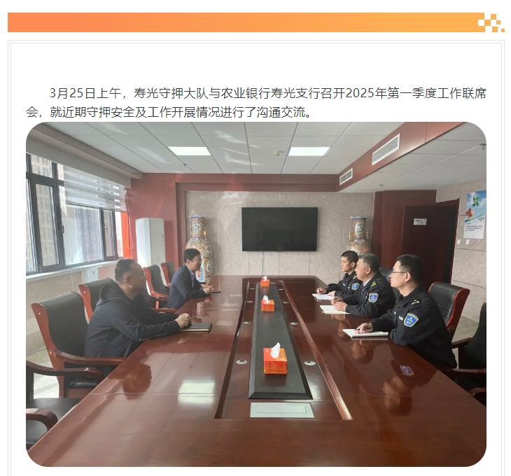 上一篇:高密守押大隊與中國銀行高密支行召開押運(yùn)工作聯(lián)席...